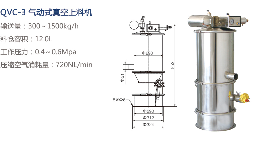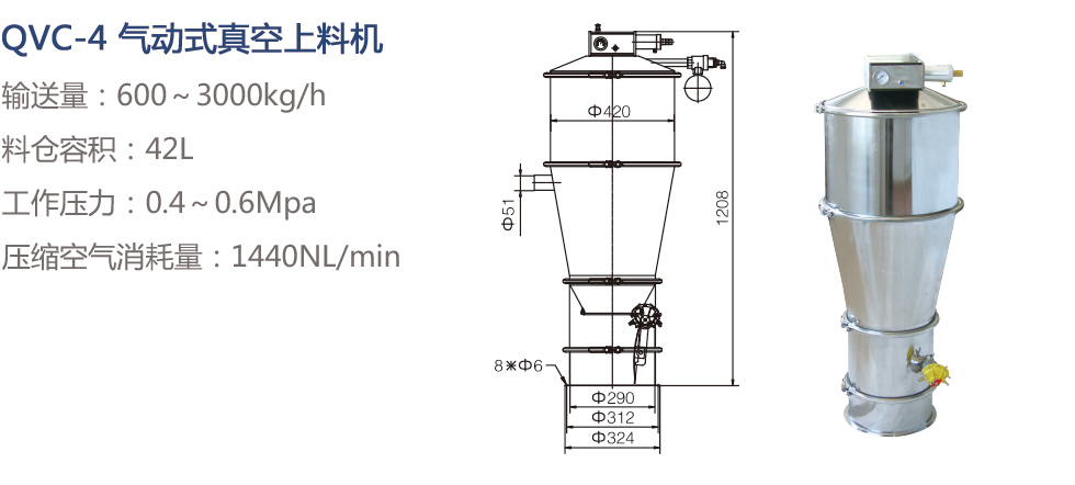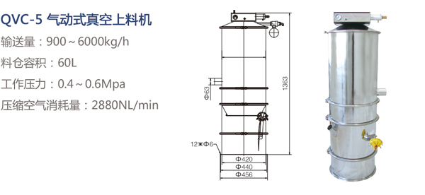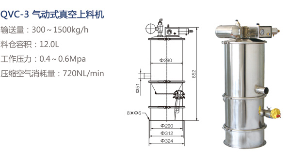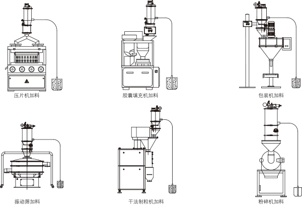氣動(dòng)式真空上料機(jī)是利用壓縮空氣通過真空發(fā)生器產(chǎn)生高真空實(shí)現(xiàn)對(duì)物料的輸送,不需要機(jī)械式真空泵,具有結(jié)構(gòu)簡(jiǎn)單、體積小、免維修、噪音低、控制方便、消除物料靜電和符合GMP要求等優(yōu)點(diǎn)。真空發(fā)生器產(chǎn)生的高真空,使被輸送的物料杜絕了分層現(xiàn)象,保證了混合物料成份的均一性,是壓片機(jī)、膠囊填充機(jī)、干法制粒機(jī)、包裝機(jī)、粉碎機(jī)、振動(dòng)篩等機(jī)械自動(dòng)上料的設(shè)備。